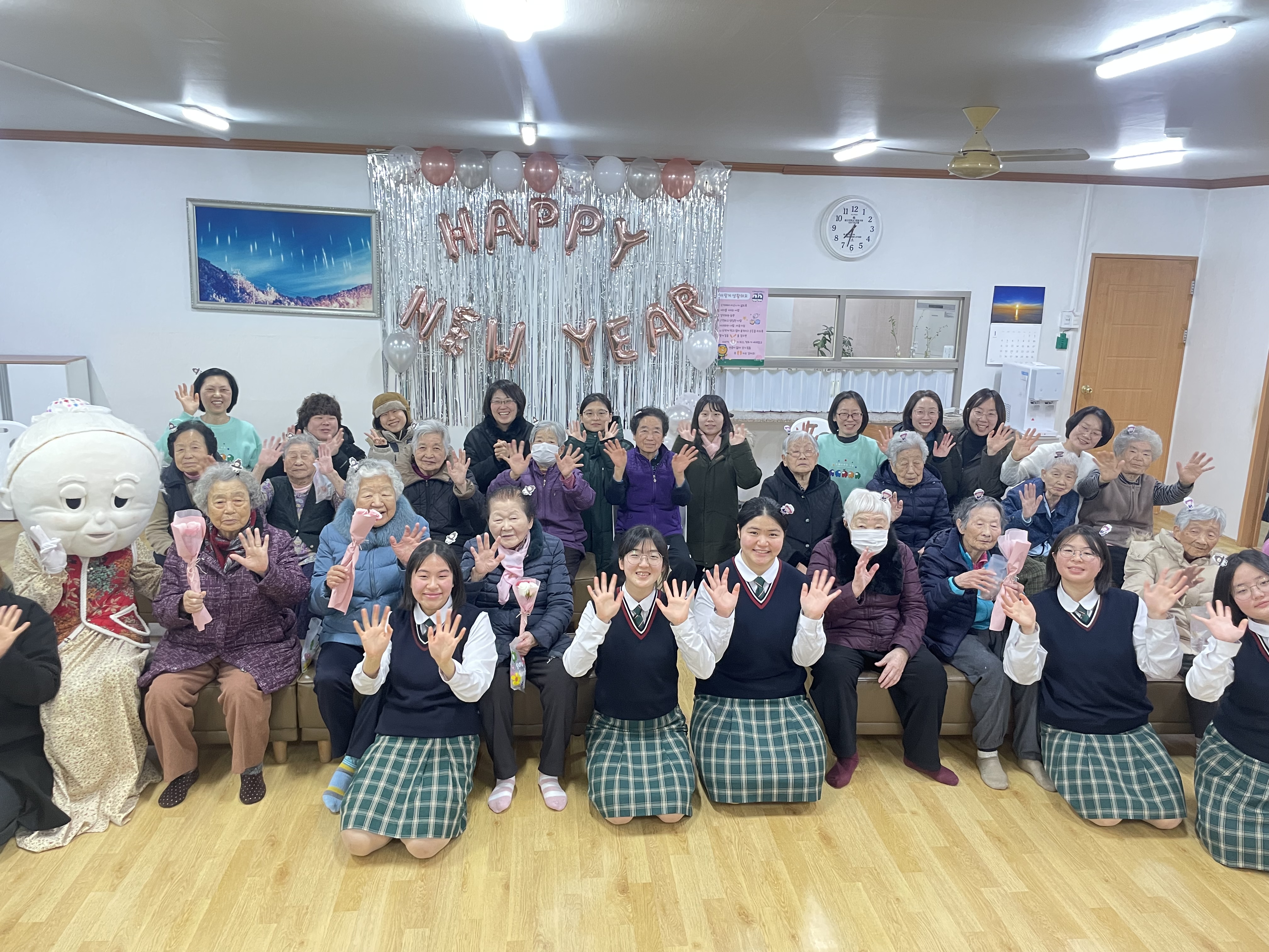 주민들은 새해를 맞아 서로 인사를 나누며 한 해의 각오를 다졌고, 양로원에서는 SANC식품여고 학생들이 어르신들과 함께 율동을 하며 즐거운 시간을 보냈습니다.